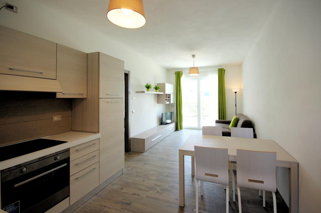 ingresso, soggiorno con cucina a vista,