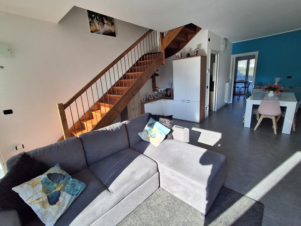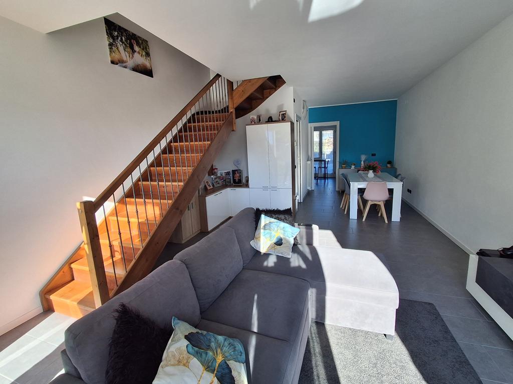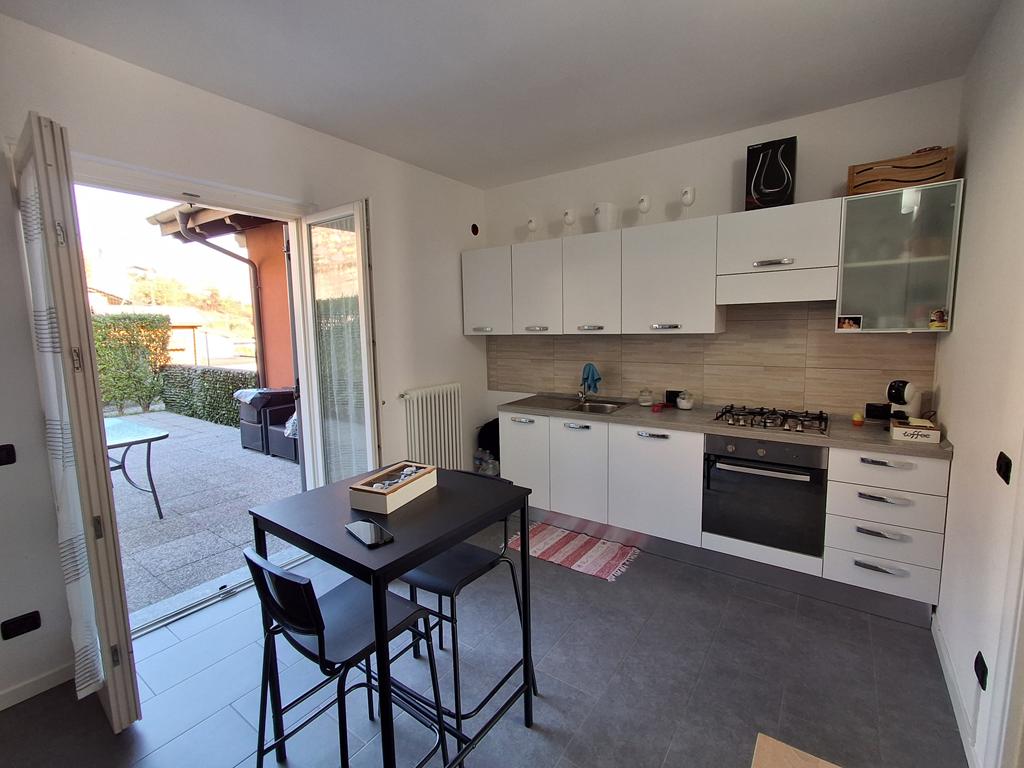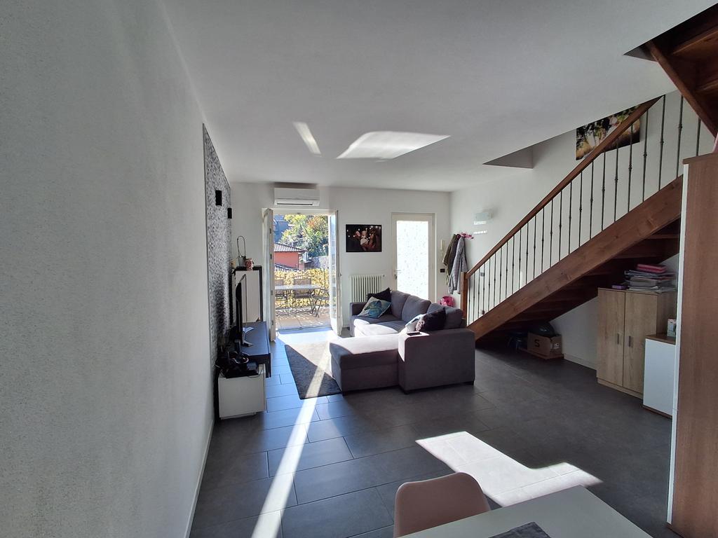 L’abitazione si sviluppa su due livelli. Al piano rialzato troviamo una luminosa zona giorno con cucina a vista, un bagno di servizio e un ampio terrazzo di circa 20 mq, perfetto per pranzi all’aperto o per godersi piacevoli serate estive in compagnia, ammirando la splendida vista sul lago e sulle montagne circostanti.