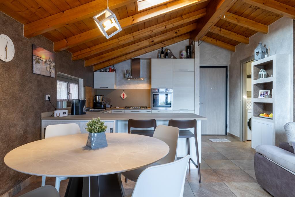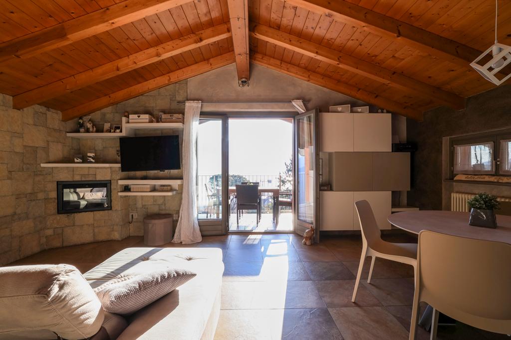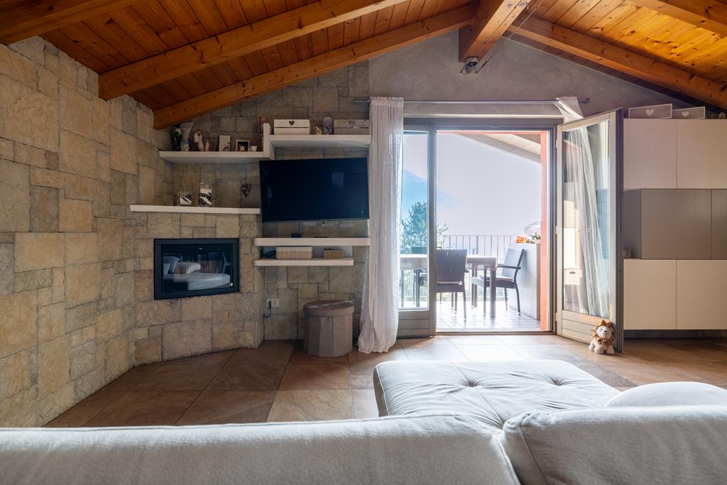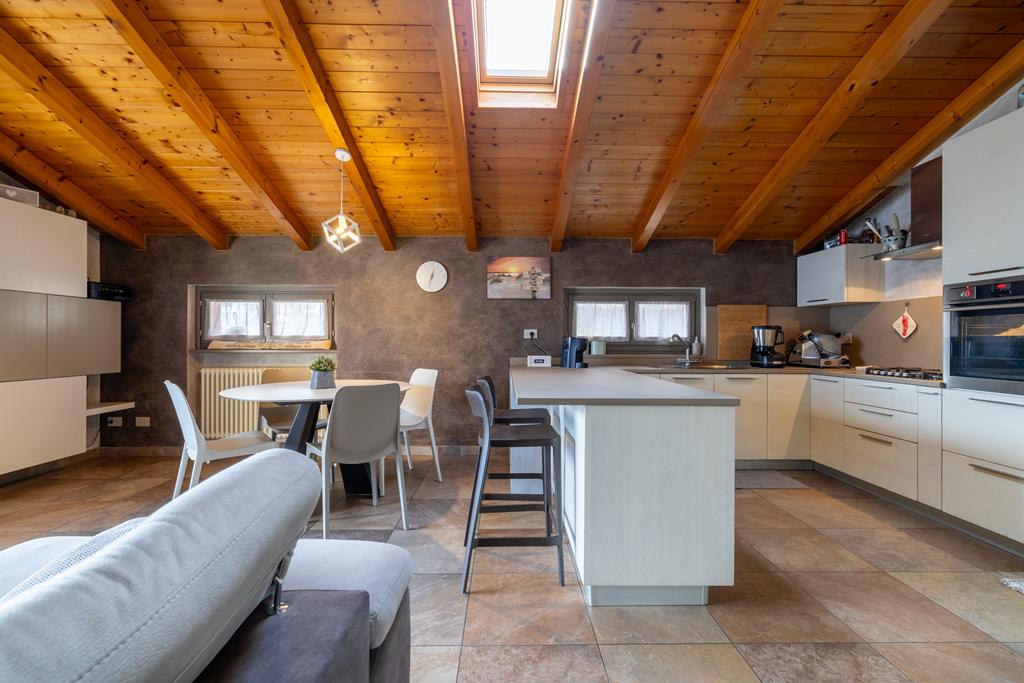 In posizione soleggiata e con spettacolare vista lago, all’interno di un elegante contesto residenziale composto da sole 5 unità abitative, proponiamo in vendita un magnifico attico che occupa l’intero piano, impreziosito da travi in legno a vista.