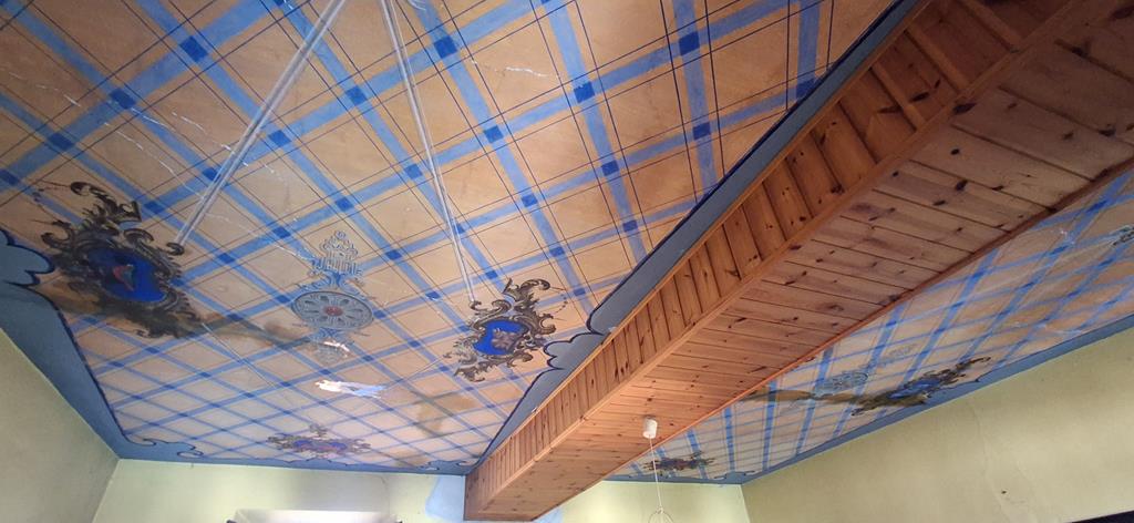 - Soffitti affrescati con motivi decorativi al piano superiore