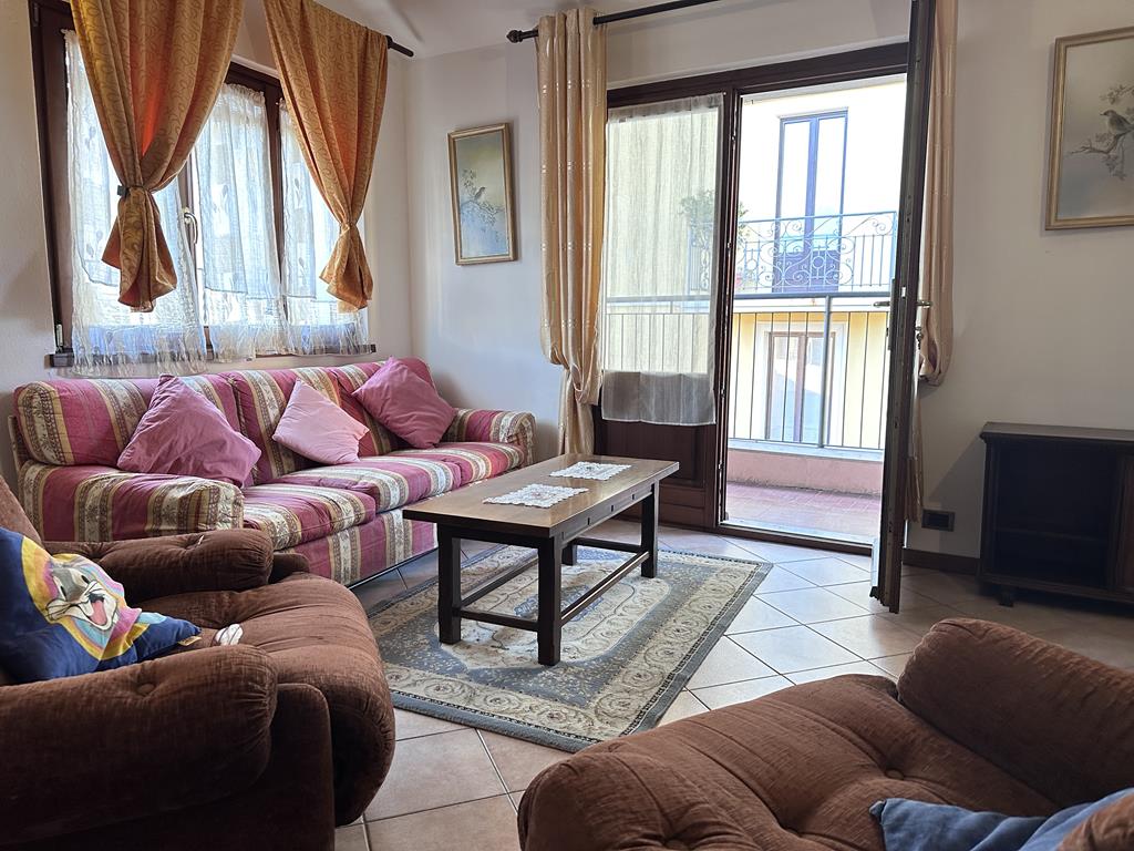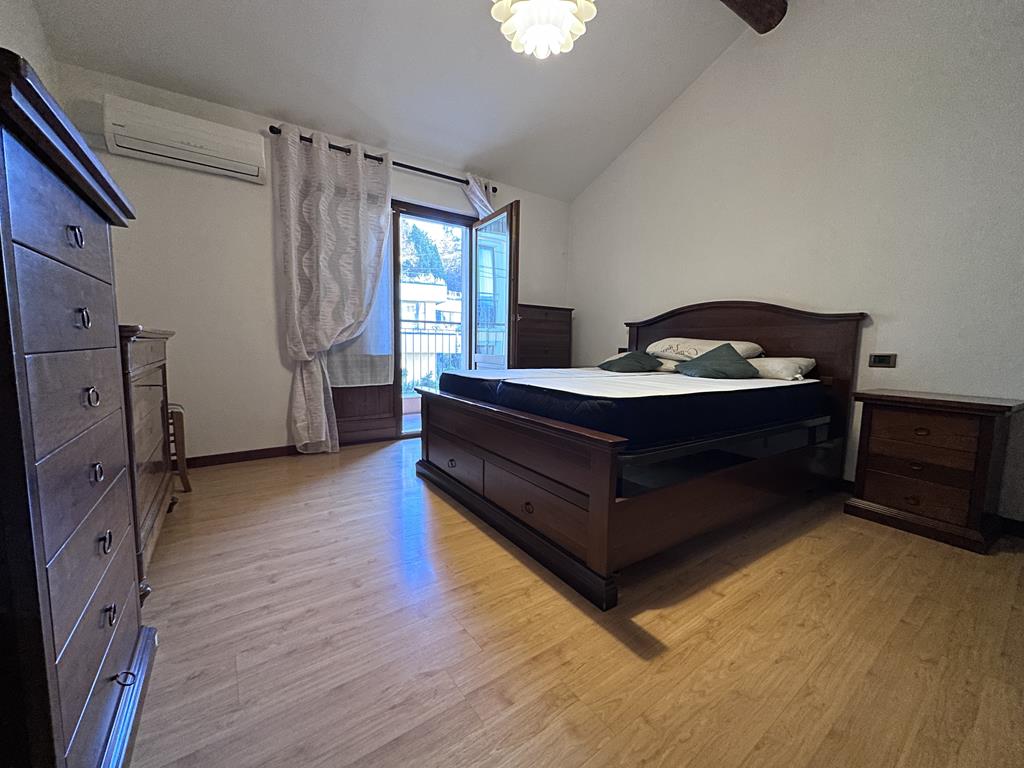 L’ampio bilocale si compone di ingresso, soggiorno con soppalco e accesso al balcone con vista lago, cucinotto, ampia camera matrimoniale e bagno.