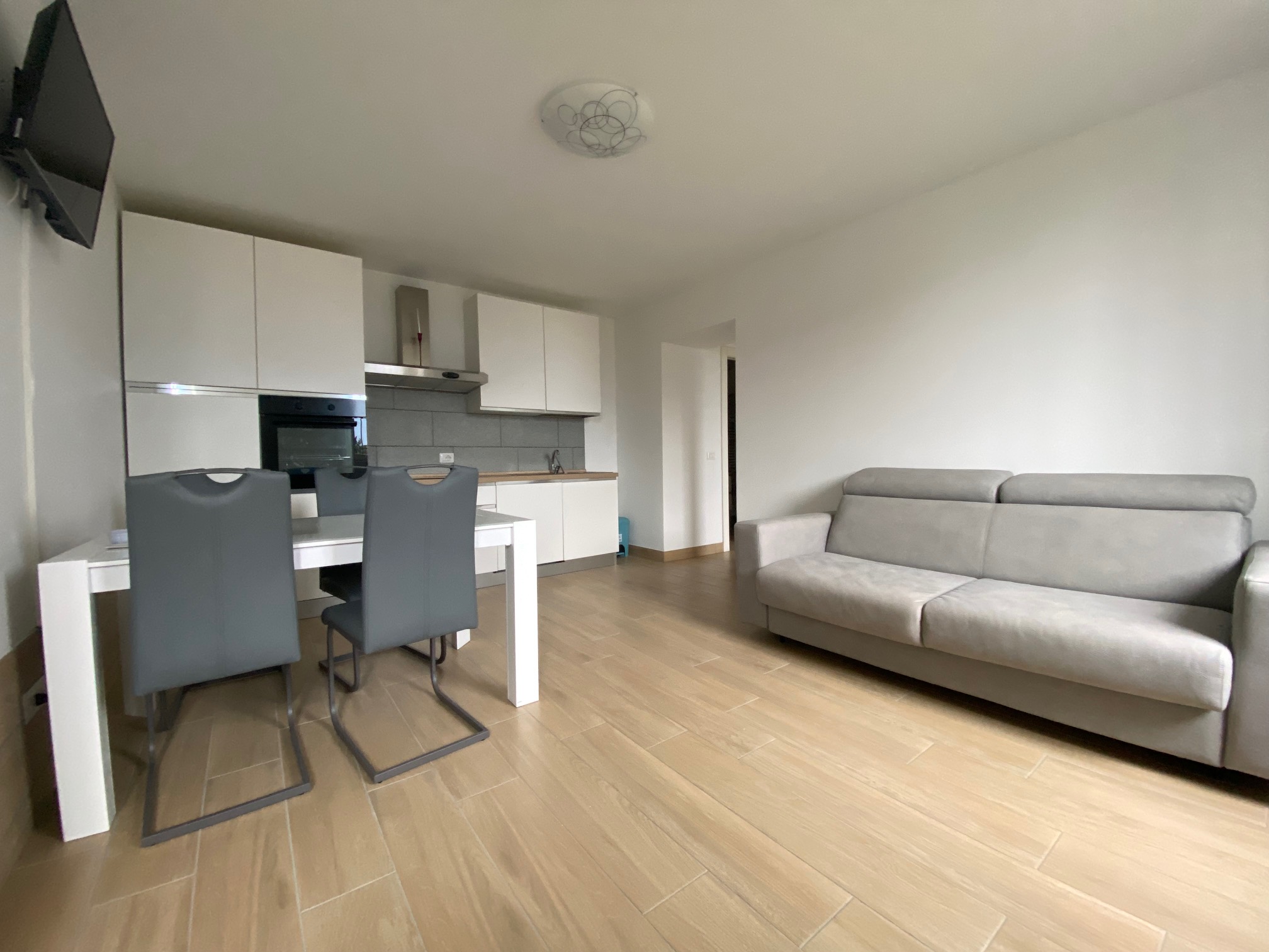 Disposizione interna: Ingresso su zona giorno con cucina a vista, grande camera da letto, bagno moderno e funzionale.