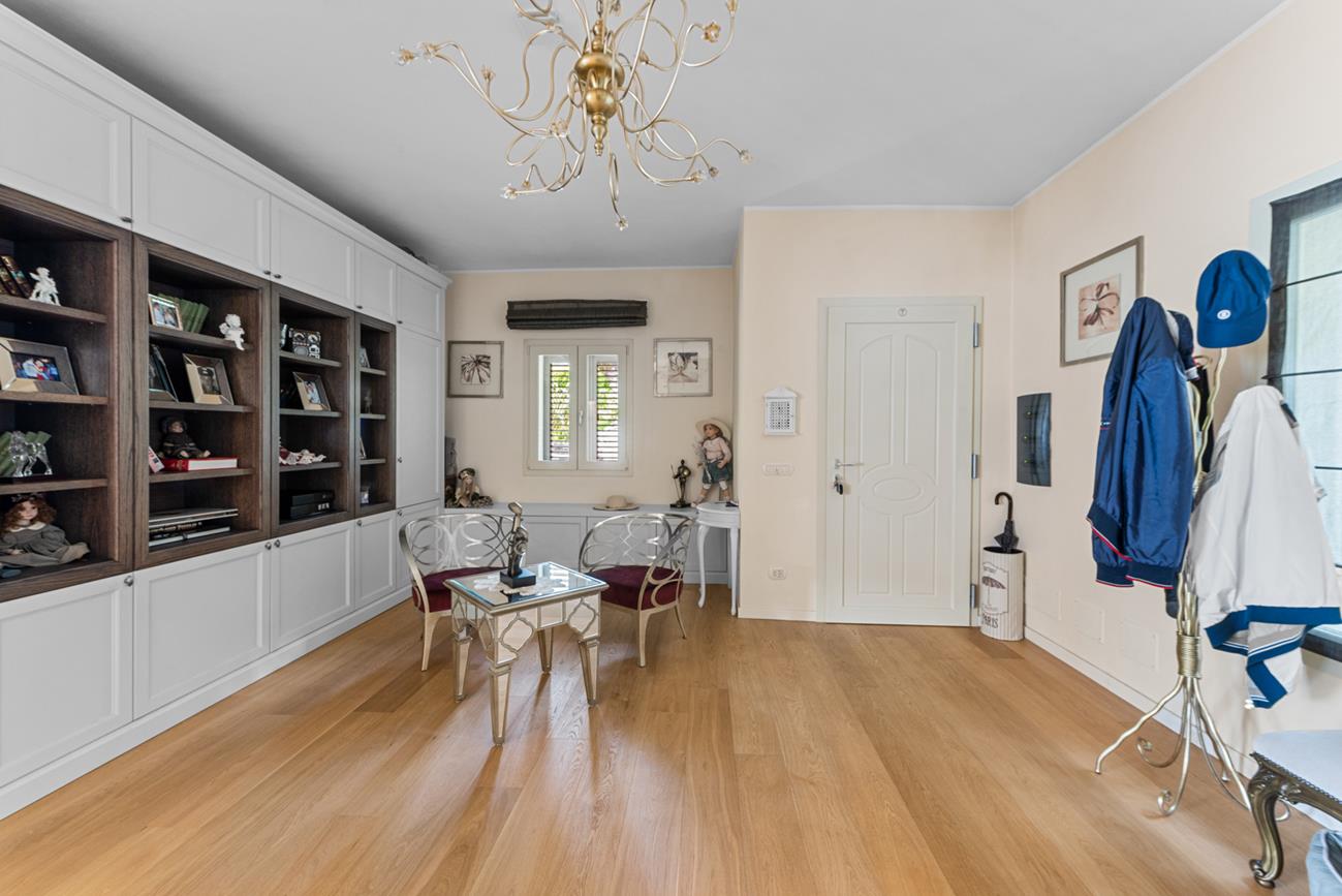 La proprietà si distingue per l’ampio giardino terrazzato con piscina panoramica e per la disposizione su un unico livello, valorizzata da grandi vetrate che regalano una straordinaria luminosità e una costante connessione con il paesaggio circostante.