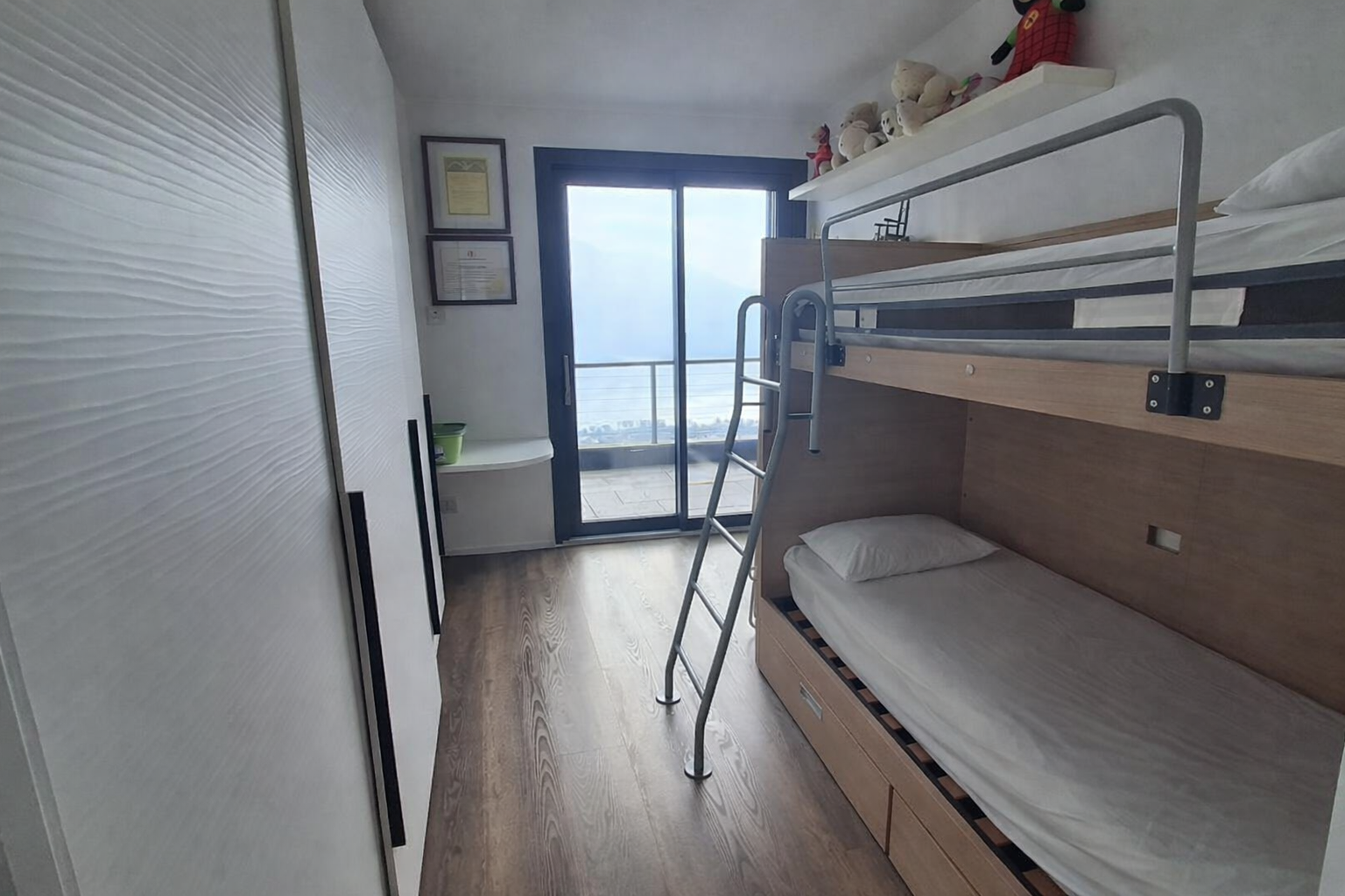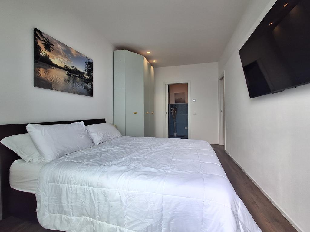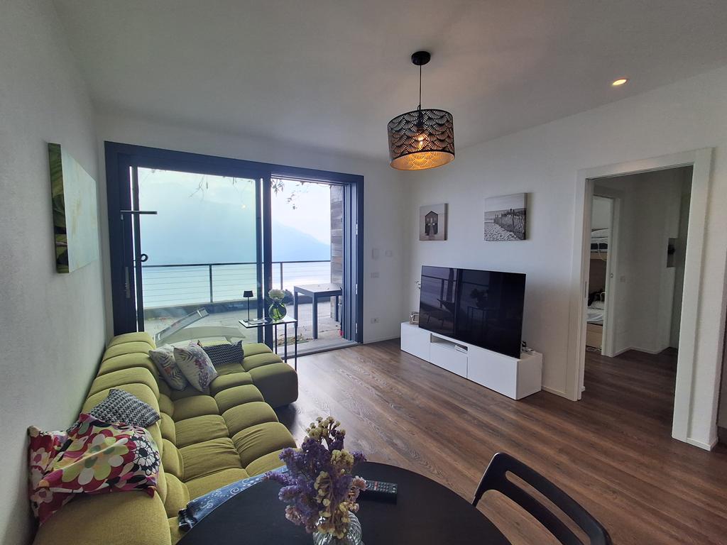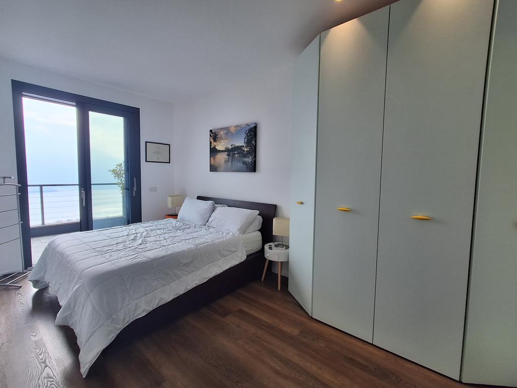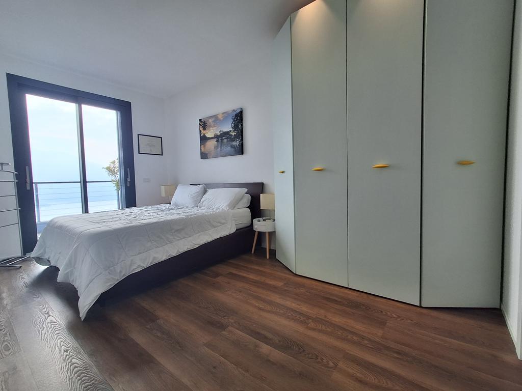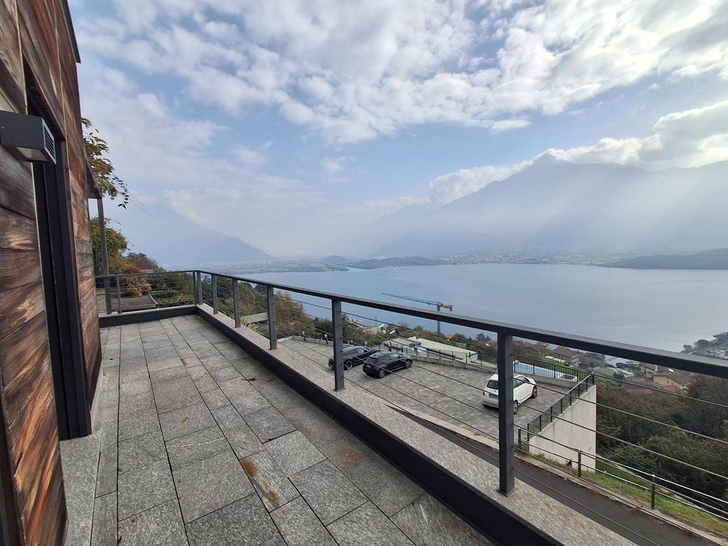 L’immobile è composto da zona giorno con cucina a vista, ampia vetrata panoramica affacciata sul lago e sulle montagne, due camere da letto e due bagni.