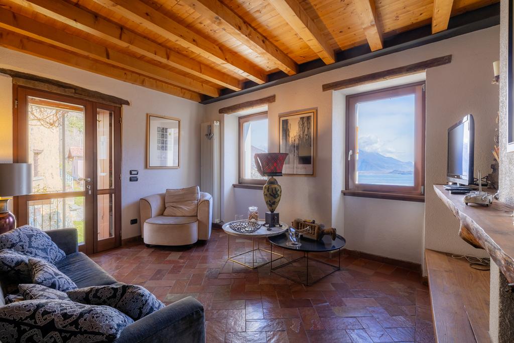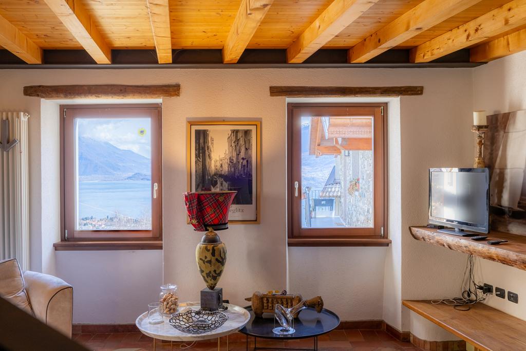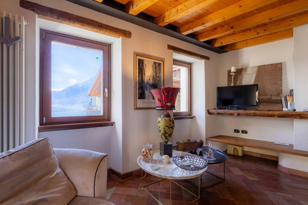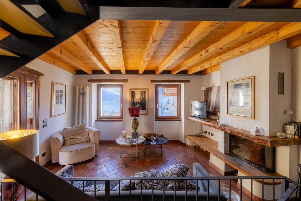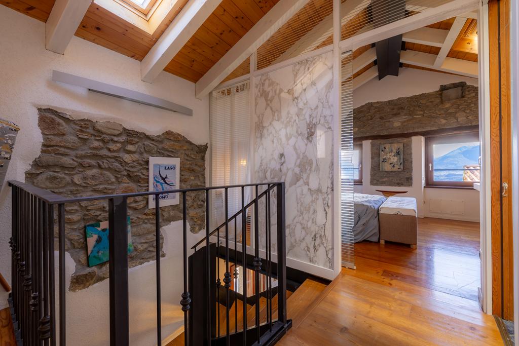 Salendo al livello superiore si apre una luminosa e accogliente zona giorno, impreziosita da un piacevole affaccio sul lago, ideale per momenti di relax e convivialità.