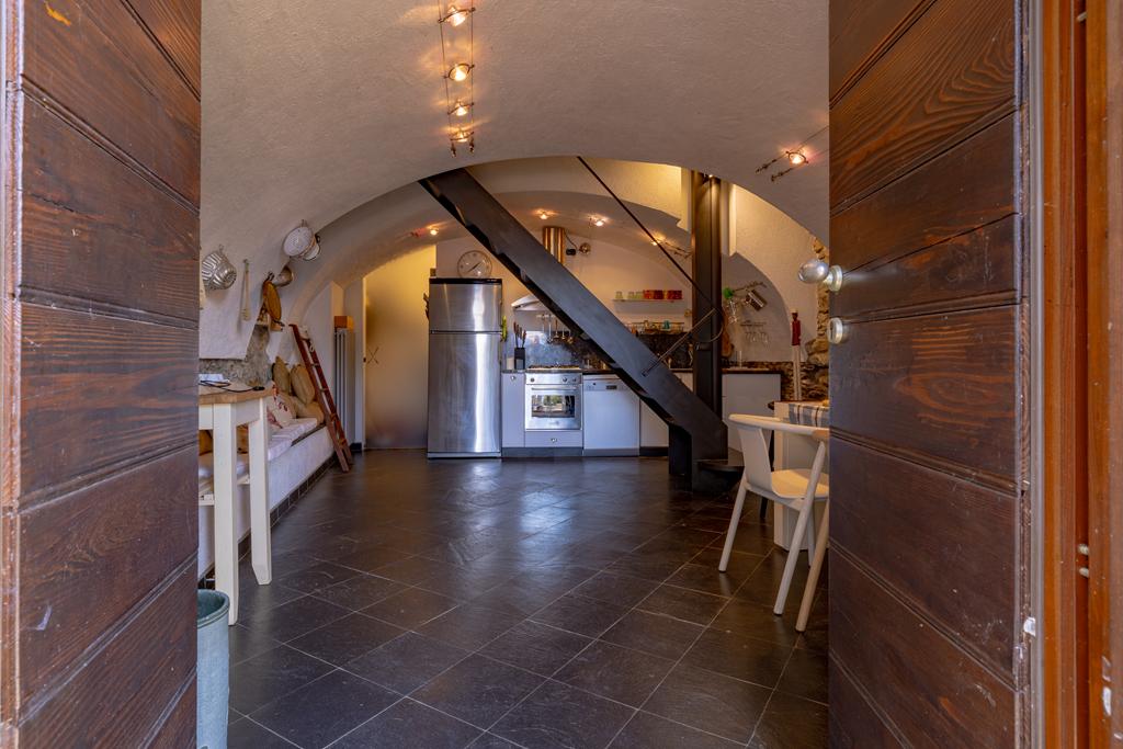 L’abitazione si sviluppa su tre piani armoniosamente collegati. Al piano d’ingresso troviamo un ampio locale con caratteristico soffitto a volta, attualmente adibito a taverna con angolo cottura, oltre a pratico ripostiglio e bagno.