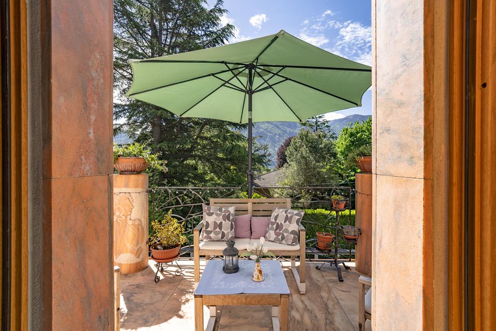 Il piano mansardato è caratterizzato da soffitti alti con travi a vista e ospita un ampio salone con camino, un bagno privato e due terrazze. La terrazza sul tetto rappresenta uno spazio esclusivo ideale per aperitivi al tramonto, pranzi e cene all’aperto con scorci sul Lago di Como.