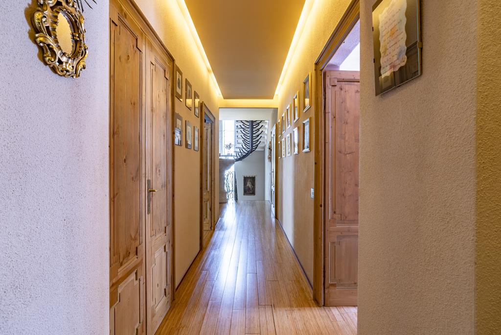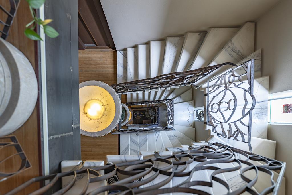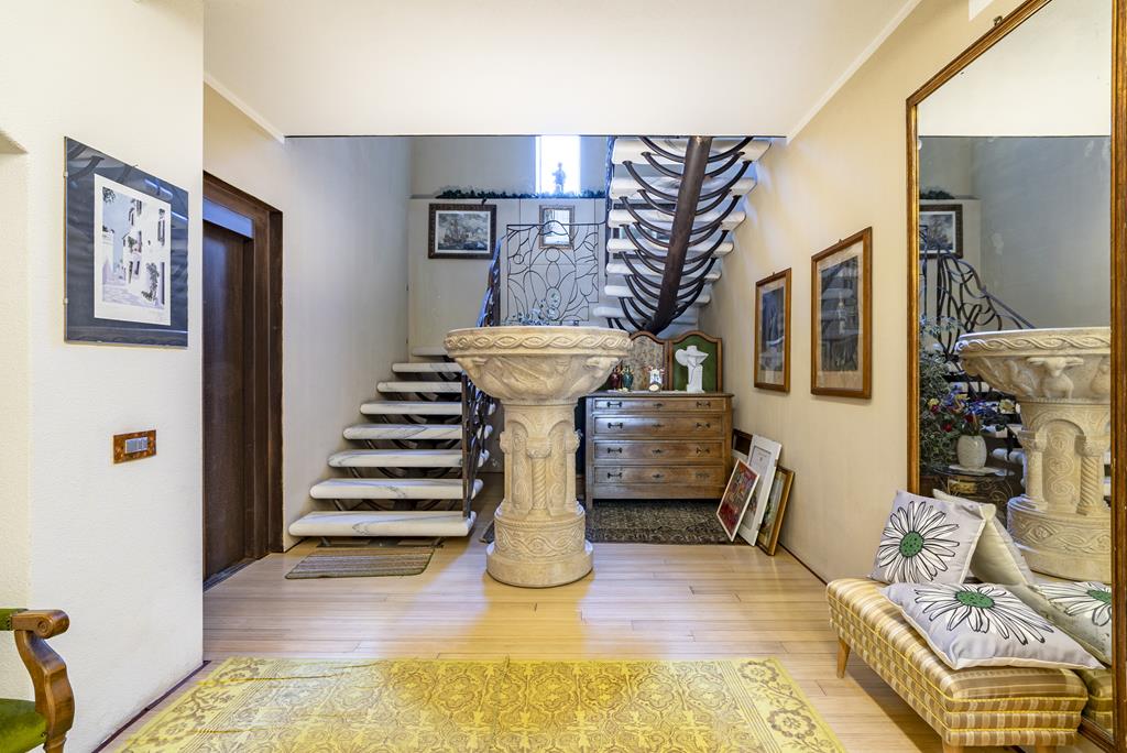 I diversi livelli della villa sono collegati da una maestosa scala in marmo con struttura in ferro e ringhiera artigianale lavorata a mano, oltre che da un comodo ascensore interno che collega la zona giorno, la zona notte, la mansarda e l’area wellness.