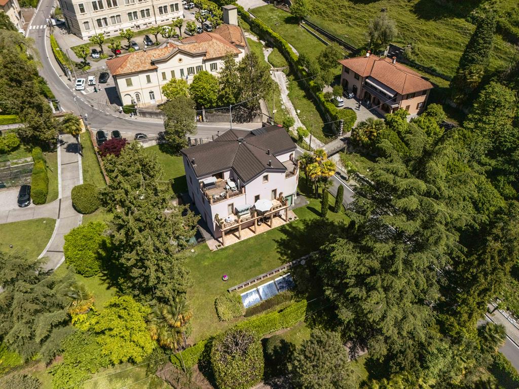 Circondata da circa 1.500 mq di giardino curato, la proprietà offre privacy, tranquillità e un’atmosfera esclusiva. Davanti alla villa si estende un magnifico parco con alberi secolari, che crea una cornice naturale raffinata. Dal piano superiore si intravede uno scorcio del lago, mentre la riva è raggiungibile in meno di un minuto a piedi, rendendo questa proprietà particolarmente prestigiosa.