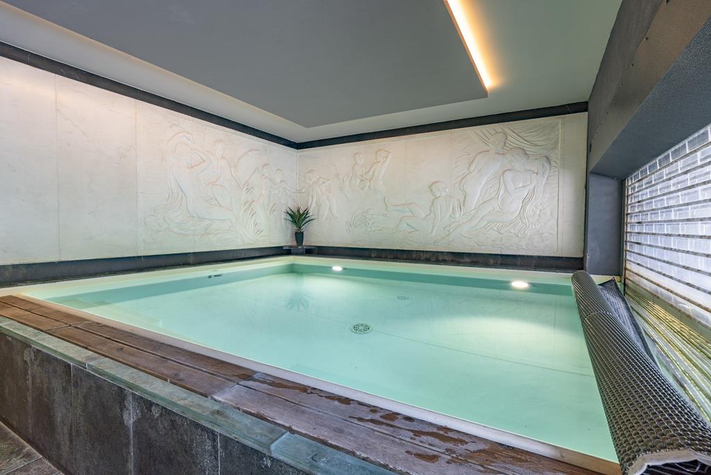 Il piano seminterrato è dedicato al relax e al tempo libero e comprende una zona hobby, una spa privata con sauna per 4–6 persone, una doccia e una spettacolare piscina di design di 12 metri per 3 metri. La piscina è rivestita in marmo lavorato a bassorilievo, in parte coperta con sistema di nuoto controcorrente e in parte aperta su un’elegante area lounge esterna ipogea, che garantisce la massima privacy.
