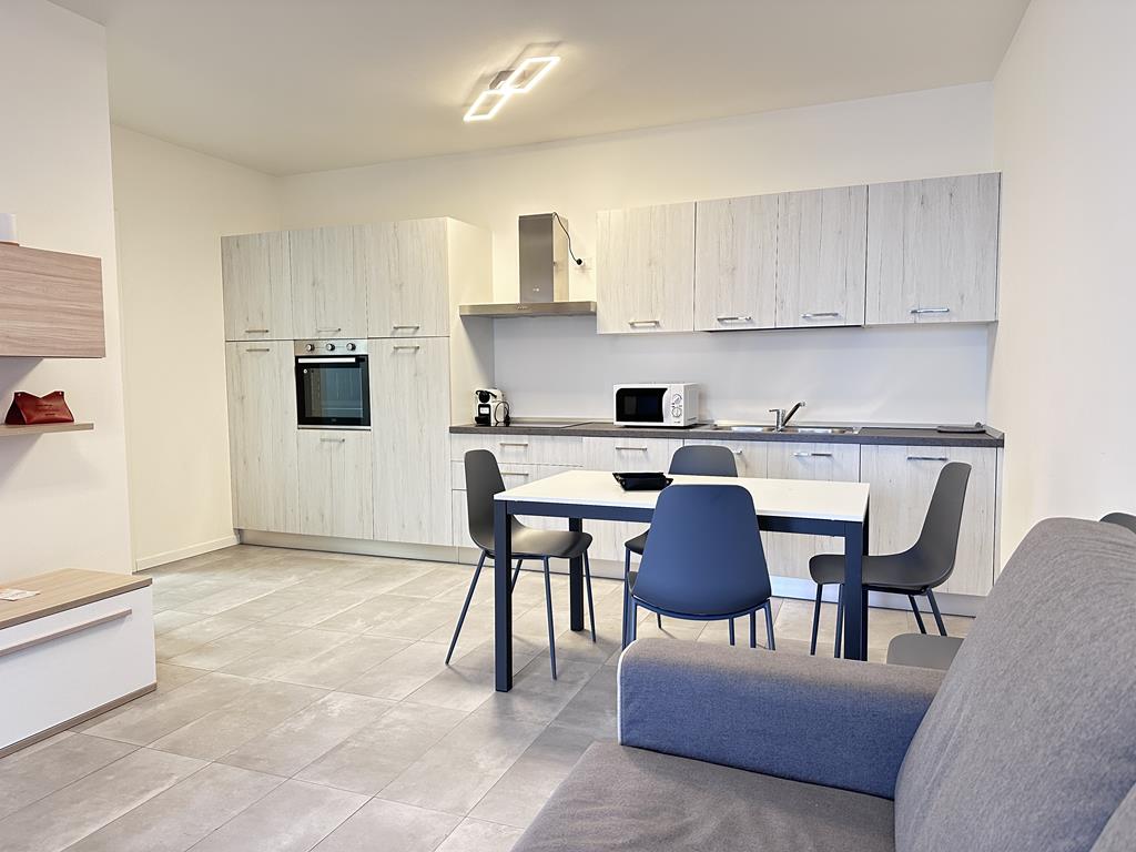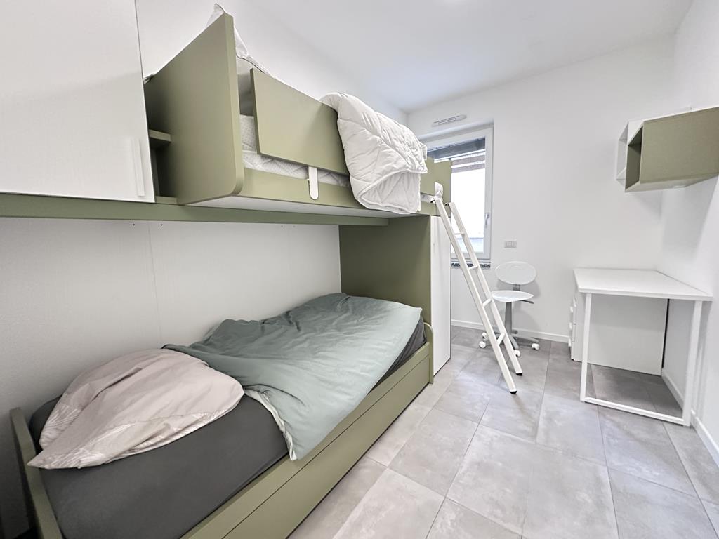 L’appartamento si compone di ingresso, soggiorno con cucina a vista, una camera matrimoniale e una seconda camera con letti a castello e un bagno, completa l’offerta un posto auto scoperto.