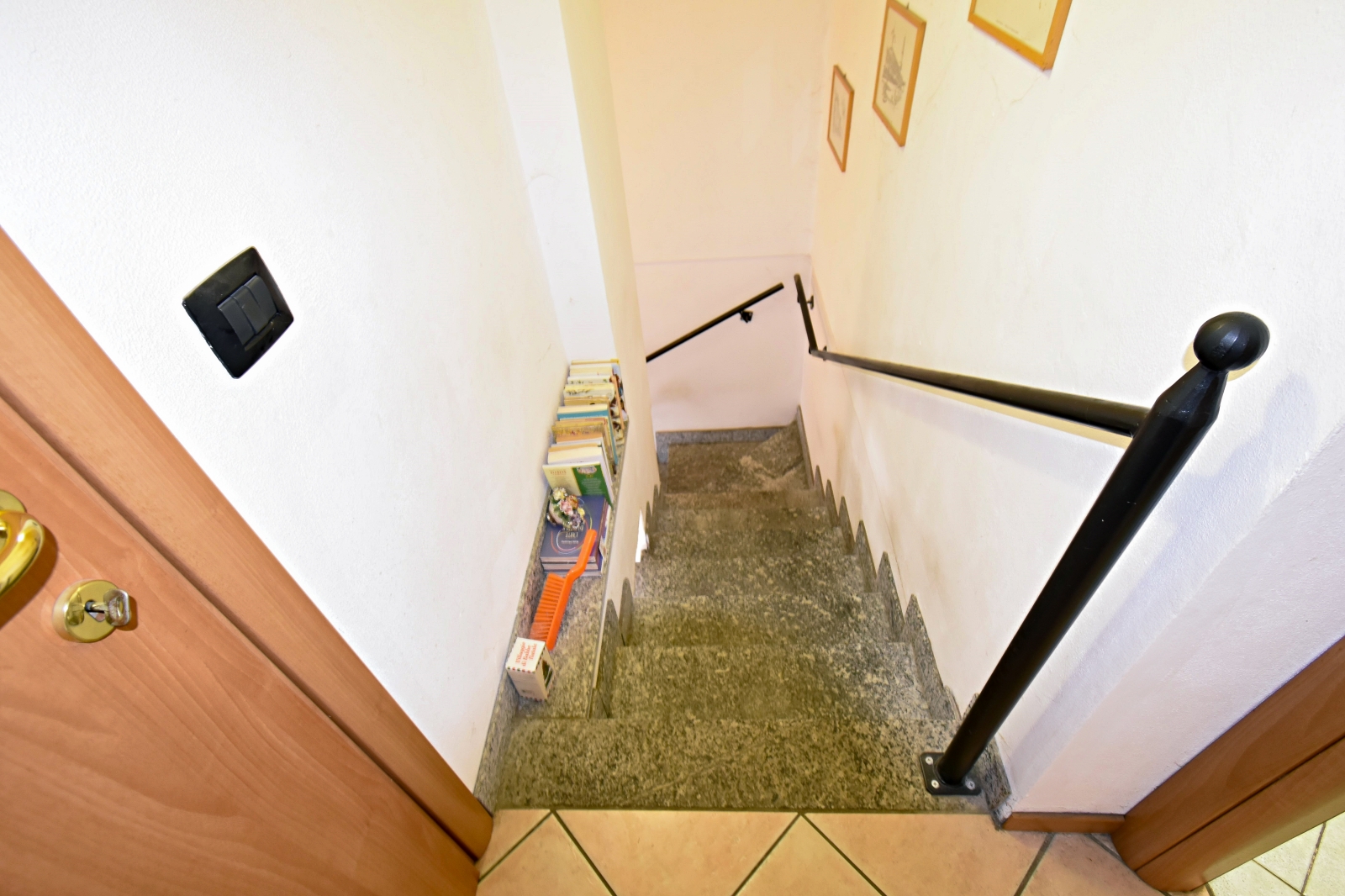 Il primo piano accoglie una luminosa zona giorno con soggiorno e cucina a vista, un bagno e un terrazzo panoramico perfetto per pranzi all’aperto o momenti di relax ammirando il lago. Da questo livello si accede direttamente al giardino privato, un angolo verde riservato dove godere della quiete e della bellezza del paesaggio.