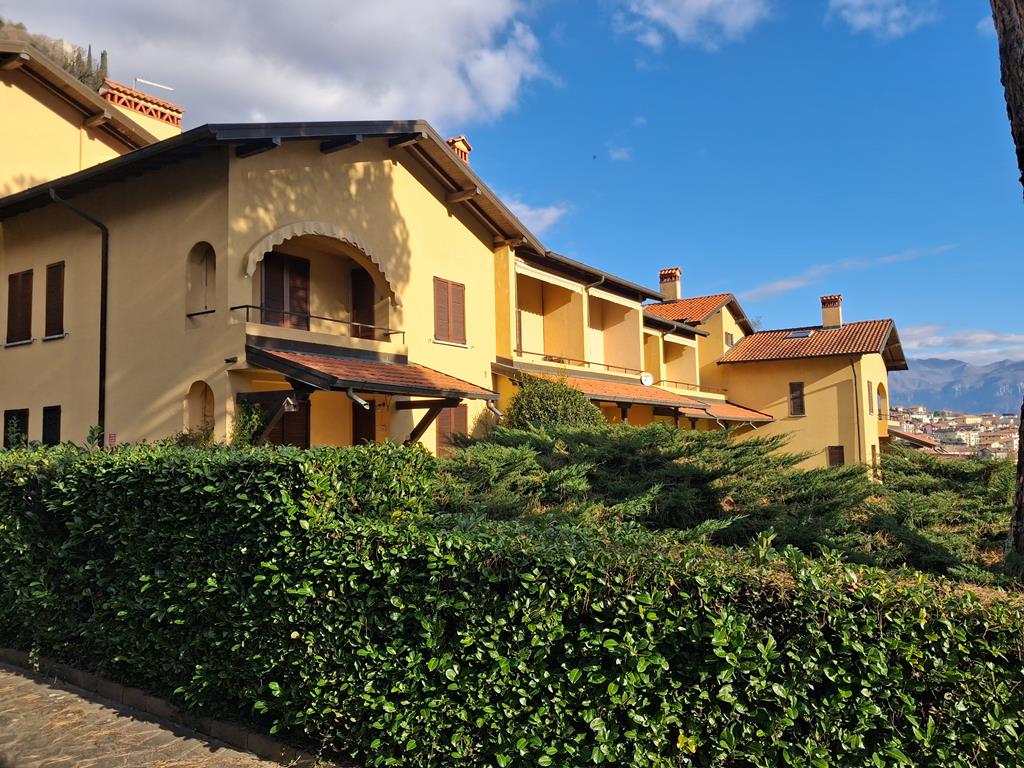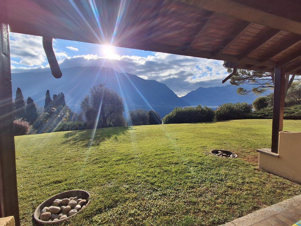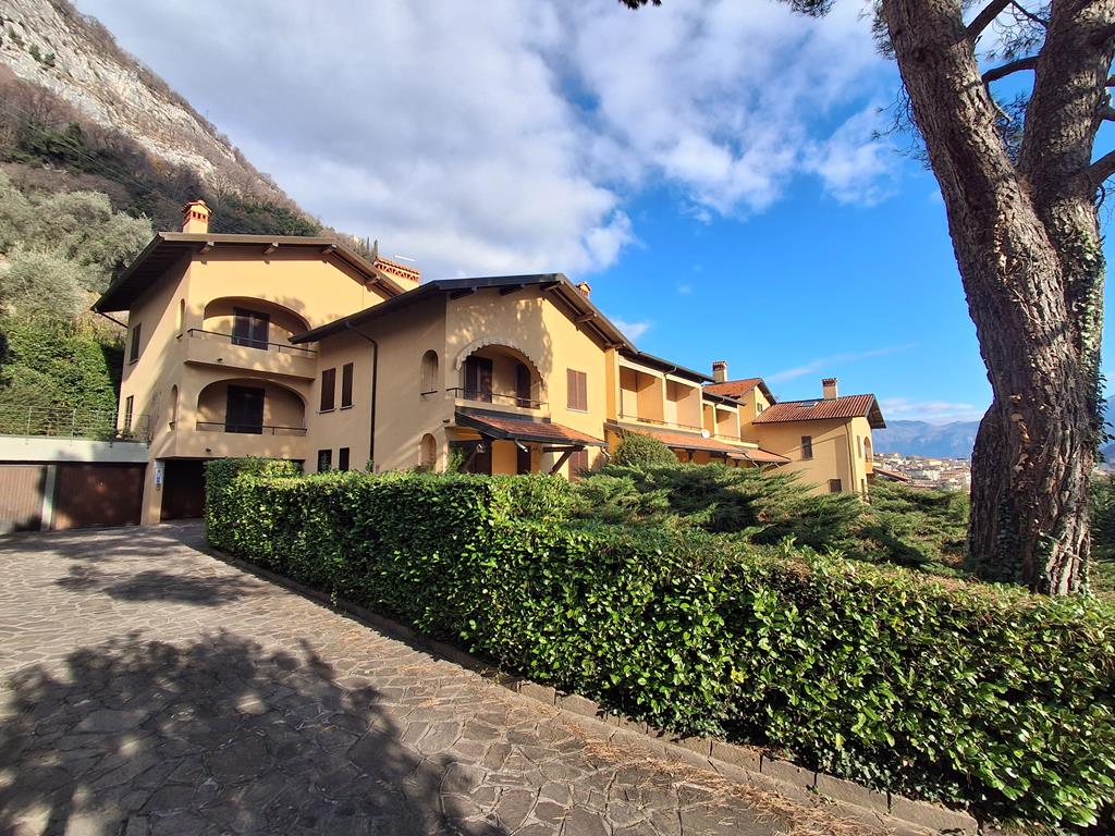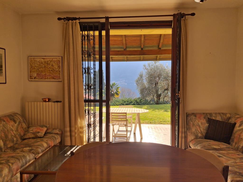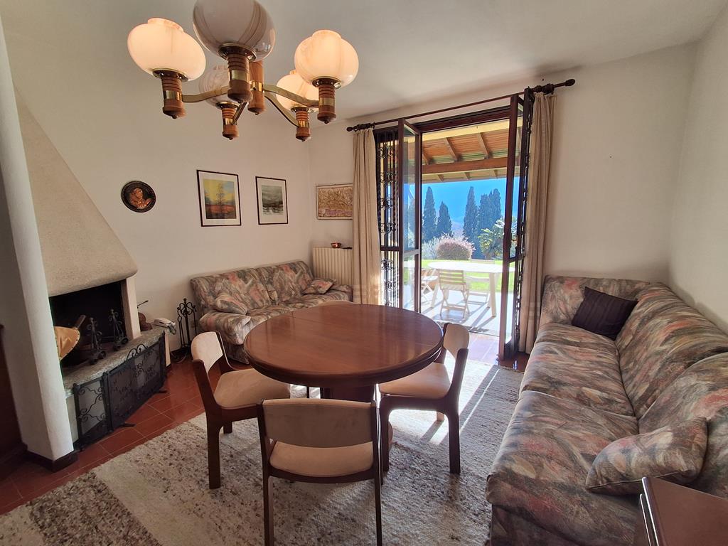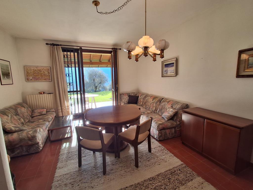 In posizione ben soleggiata, con bellissima vista lago, in un complesso residenziale immerso in 3.500 mq di giardino ben curato, graziosa villetta disposta su 3 livelli per una metratura totale di 120 mq, con portico di 15 mq e terrazzo di 12 mq.