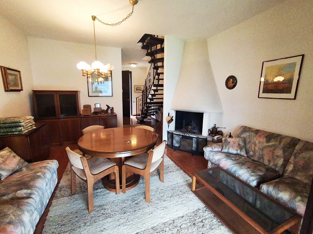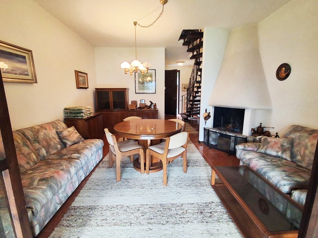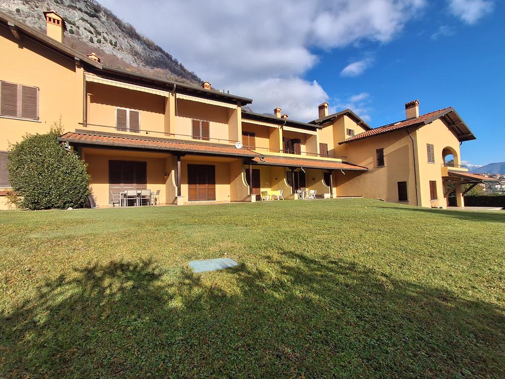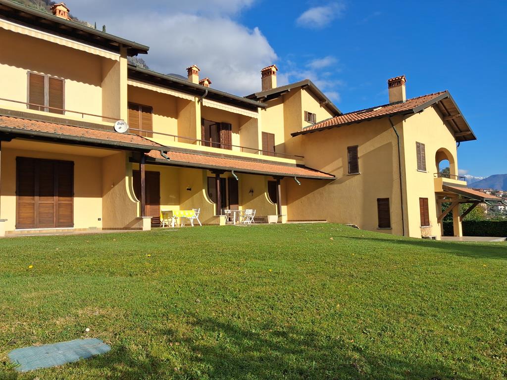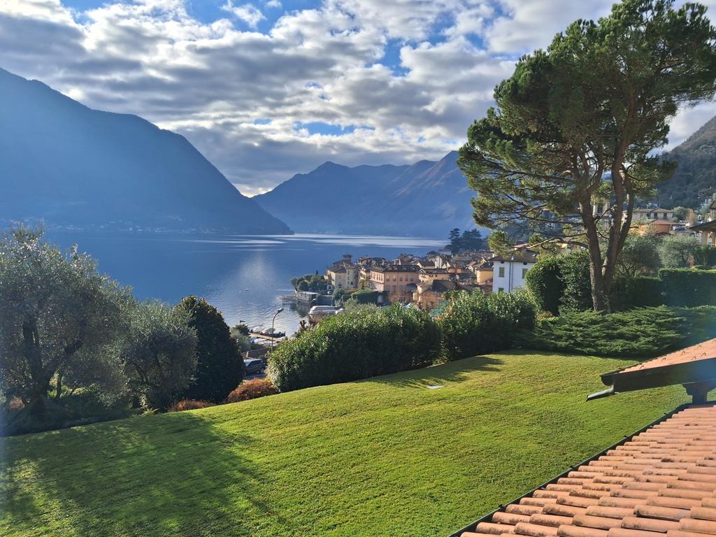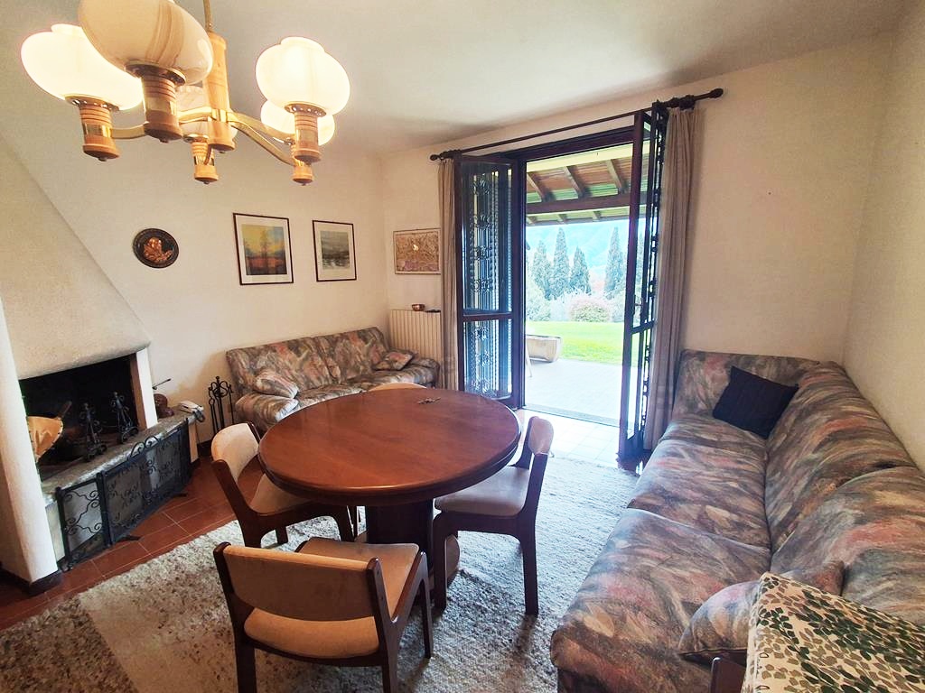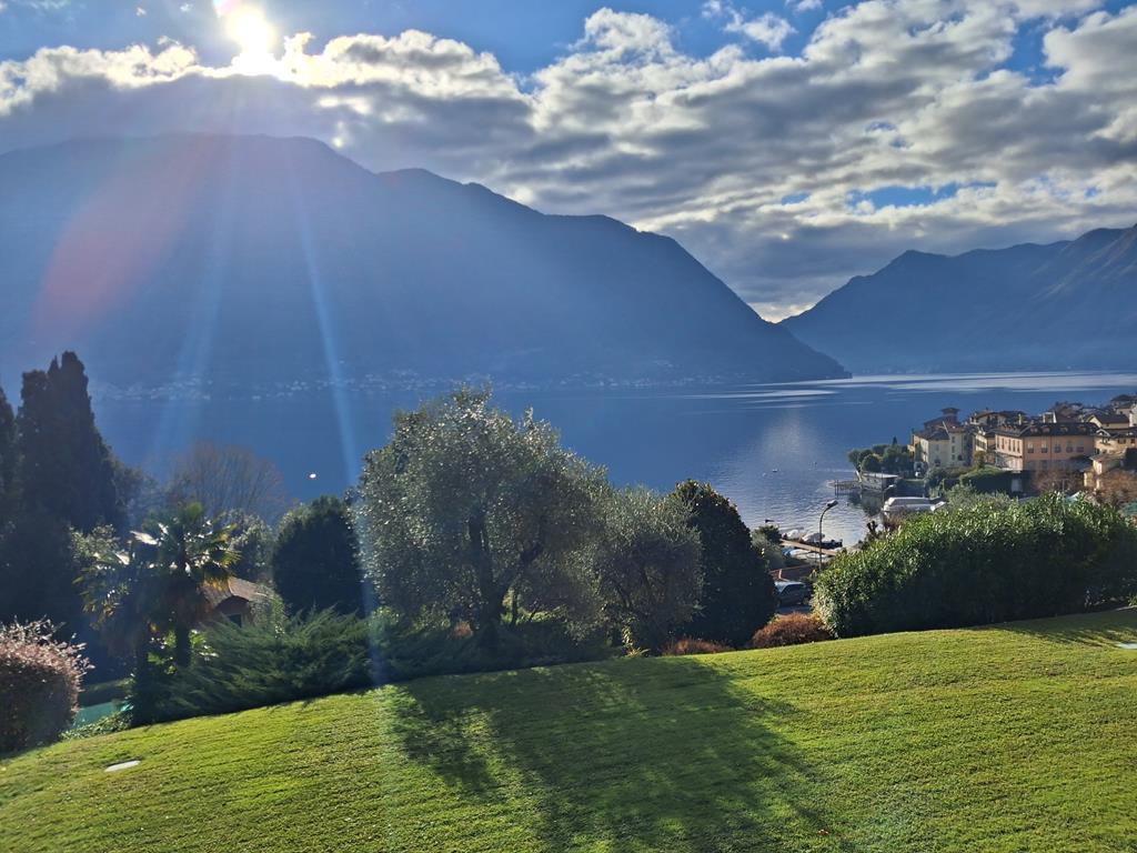 In posizione ben soleggiata, con bellissima vista lago, in un complesso residenziale immerso in 3.500 mq di giardino ben curato, graziosa villetta disposta su 3 livelli per una metratura totale di 120 mq, con portico di 15 mq e terrazzo di 12 mq.