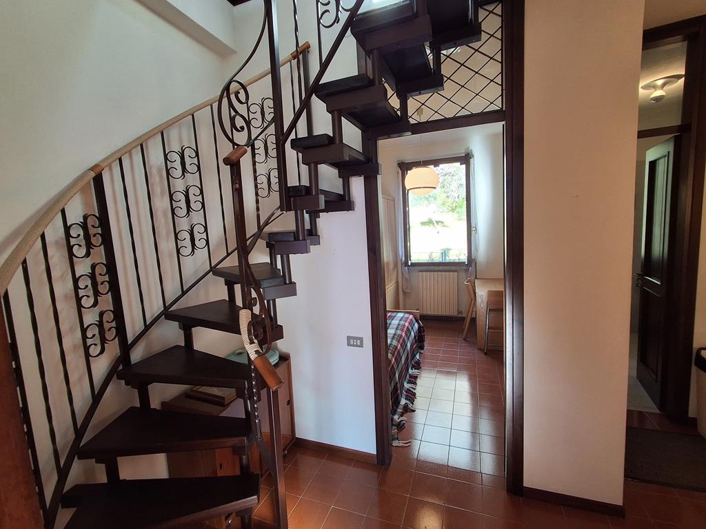 L’immobile è composto da ingresso, soggiorno con camino, cucina, bagno e ampio portico che si affaccia sul giardino con una splendida vista lago. Salendo al primo piano si trova la zona notte, composta da due camere da letto, di cui una con ampio terrazzo, e un bagno. Proseguendo al secondo piano si trova un ampio locale adibito a sala lettura/relax.