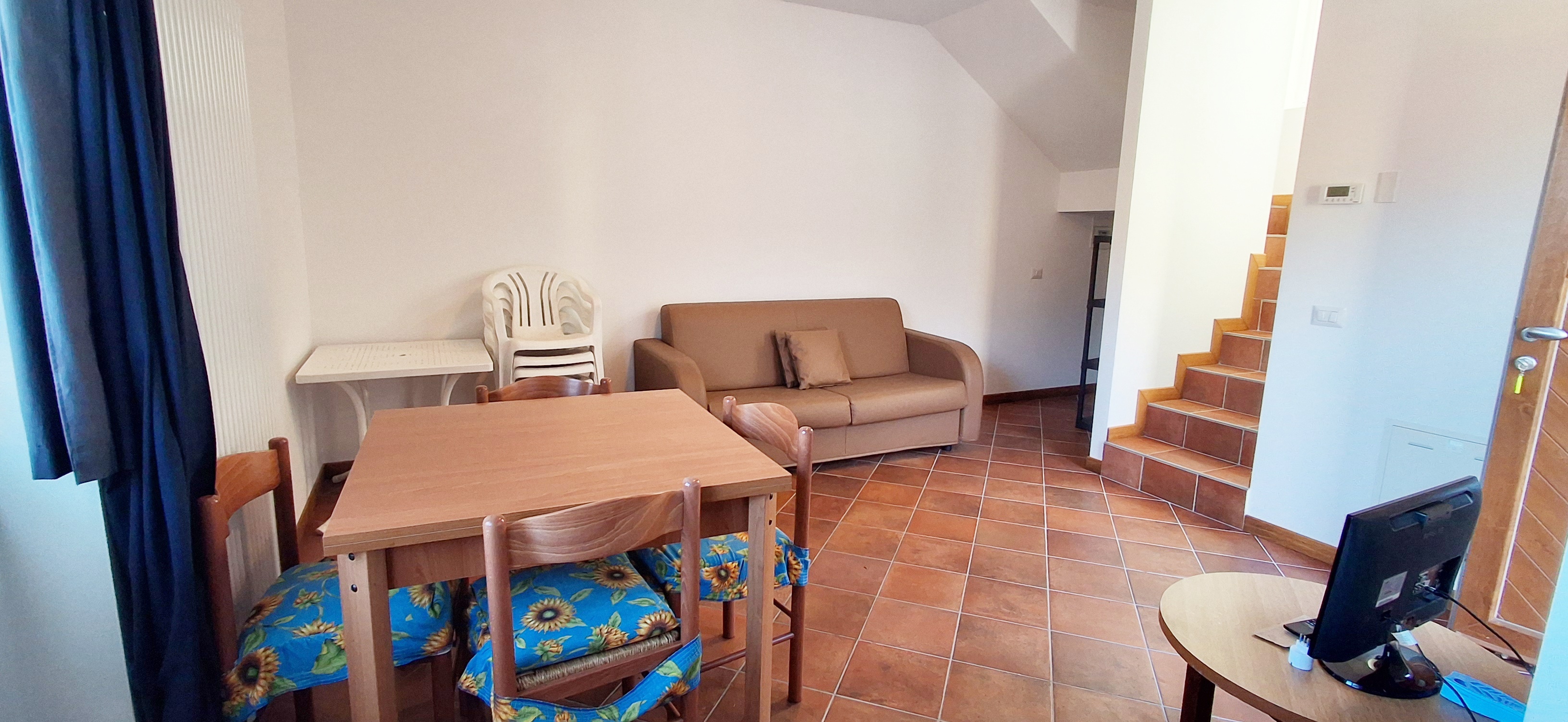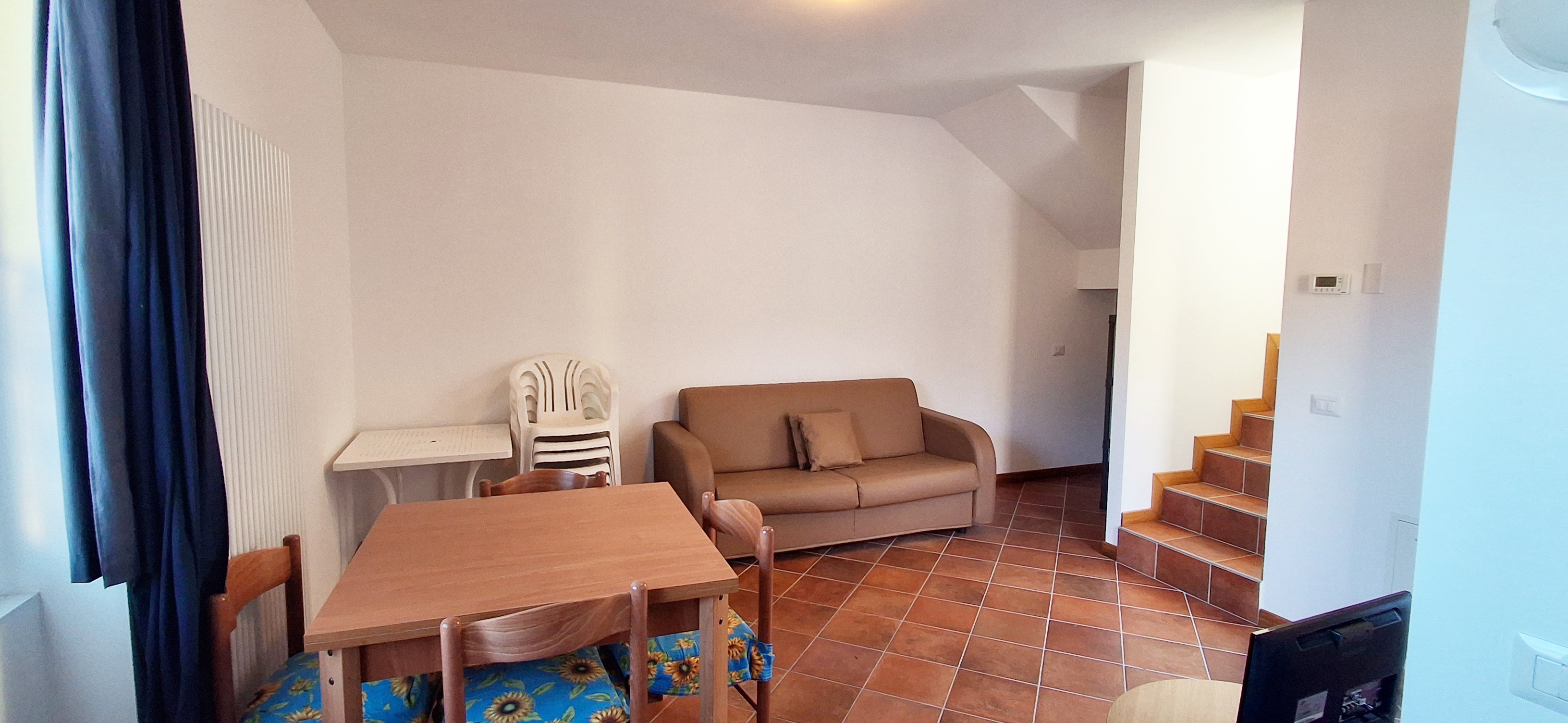 - Piano terra: zona giorno con cucinotto e pratico ripostiglio